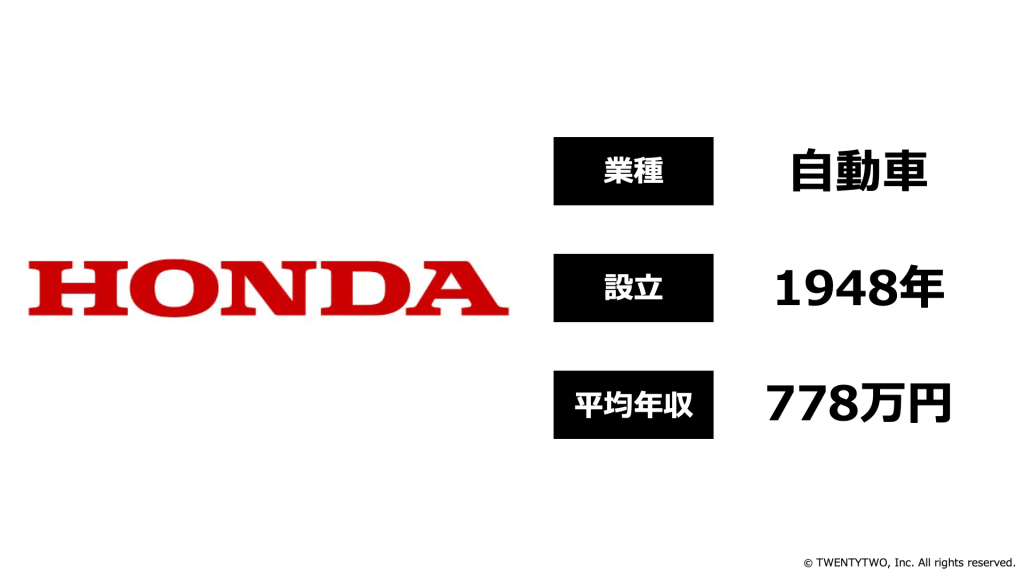 本田技研工業(ホンダ)は、世界販売台数第7位の自動車メーカーで、高級車ブランド「Acura」などを展開する北米が収益源。オートバイの販売台数は世界1位。2040年までに「脱ガソリンエンジン」を宣言、ソニーと共同でEV会社を設立しました。