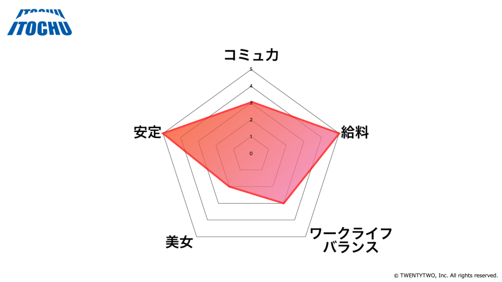 「伊藤忠商事」の女性社員を評価すると、どうなるでしょうか?
