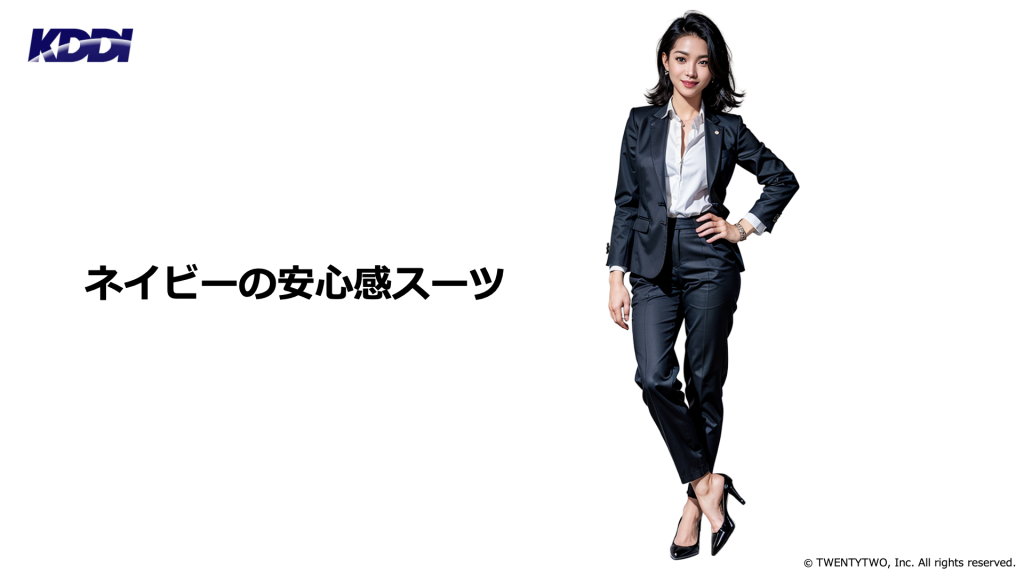 落ち着いた紺色のスーツは、社会インフラを支える企業としての信頼感と責任感を象徴しています。派手すぎず、堅実な印象です。