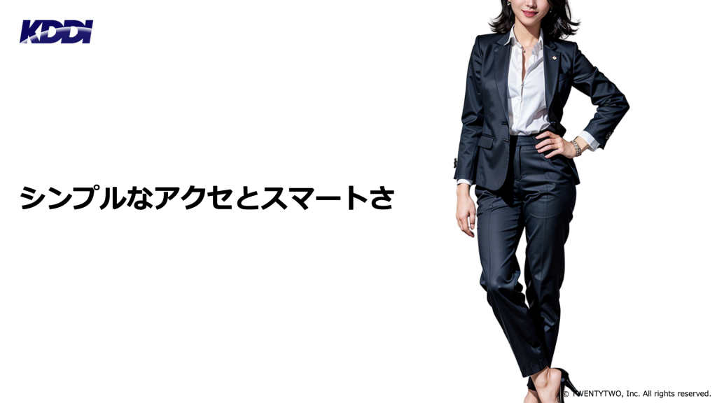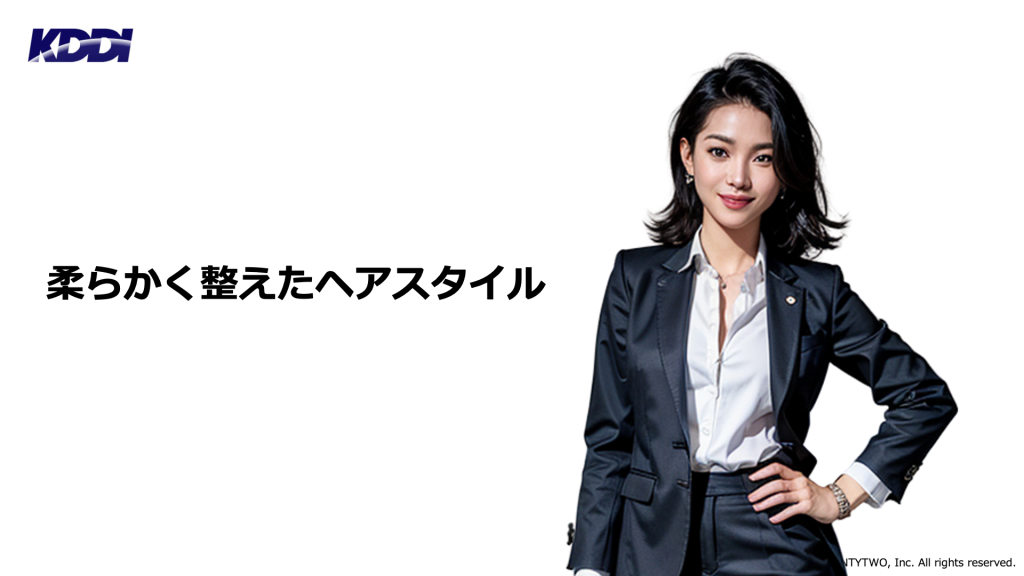 「KDDI」の女性社員を擬人化した場合、どのような外見になるでしょうか?