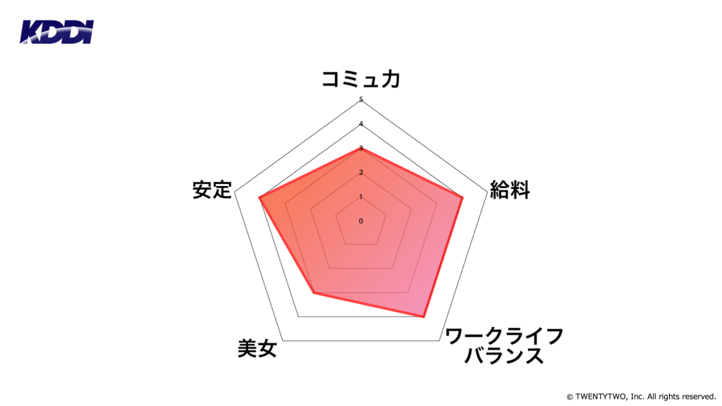 「KDDI」の女性社員を評価すると、どうなるでしょうか?
