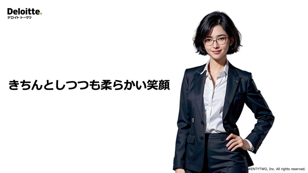 「デロイトトーマツコンサルティング」の女性社員を擬人化した場合、どのような外見になるでしょうか?