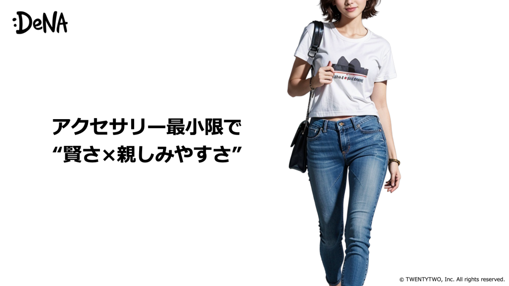 ヘルシーな肌見せスタイルは、個性や自己表現に寛容なDeNAらしさ。サイバーエージェントより落ち着きがあり、楽天より洗練された印象。