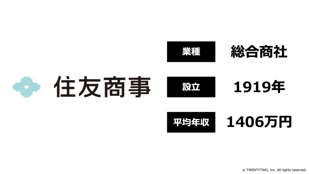 住友商事は、住友グループの中核企業で、総合商社大手。鋼材・鋼管などの金属製品、CATVなどメディア・デジタル、航空機・エンジンリースなどの輸送機・建機に強み。他に発電事業などのインフラや、非鉄金属などです。