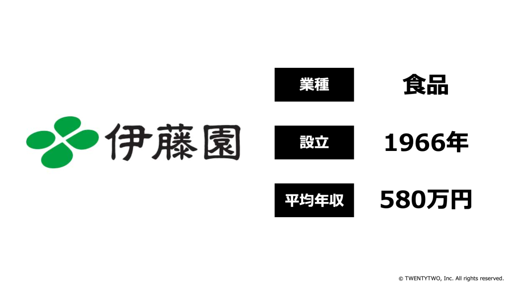 伊藤園は、茶葉・飲料の製造・小売企業大手。地域密着型のルートセールス方式。 「お~いお茶」「TEAs’TEA」等の茶系飲料から「充実野菜」等のソフトドリンクまで多数のブランドを保有。傘下にタリーズコーヒーがあります。