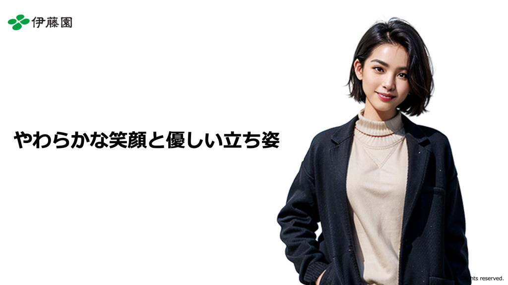 「伊藤園」の女性社員を擬人化した場合、どのような外見になるでしょうか?
