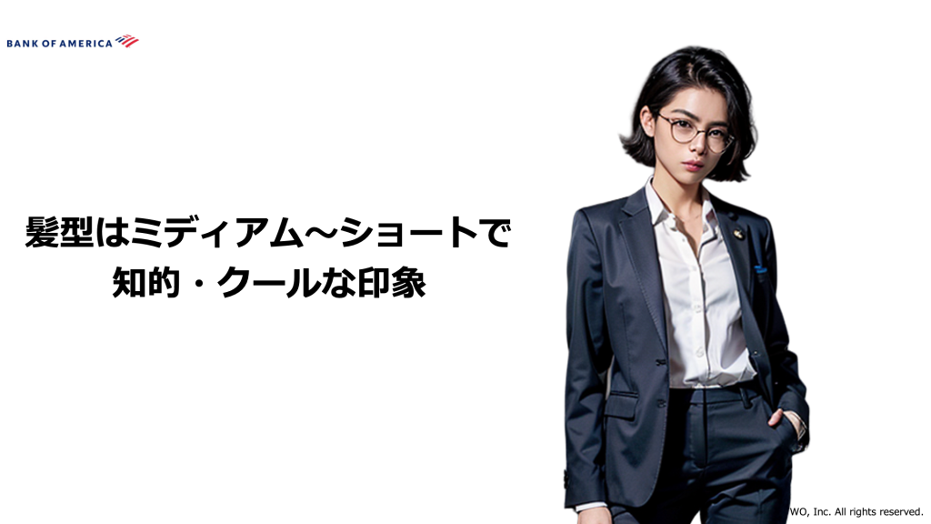 「BofA証券」の女性社員を擬人化した場合、どのような外見になるでしょうか?